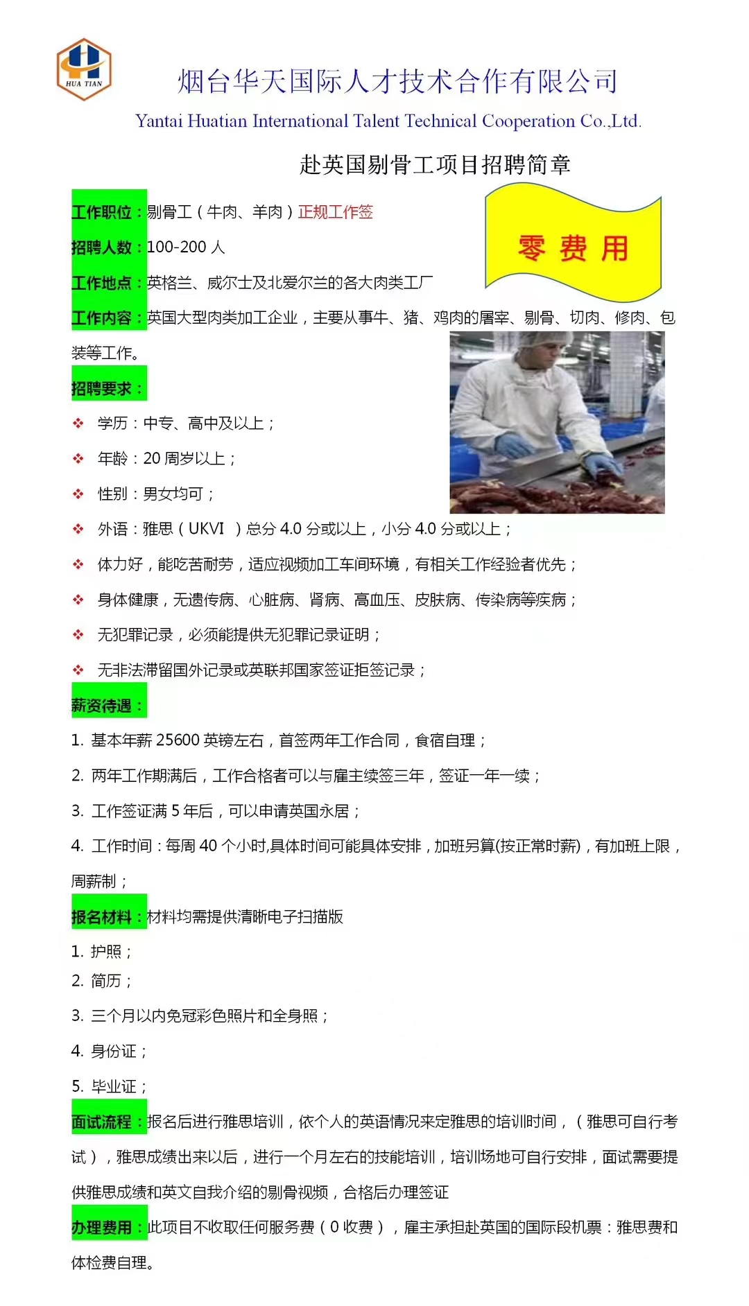 英国剔骨工0收费